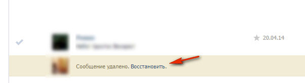 2. Если вы удалили отдельное сообщение из переписки и тут же поняли, что поступили опрометчиво, нажмите ссылку «Восстановить» рядом с надписью «Сообщение удалено». Текст послания немедленно вернётся на своё место.