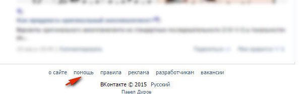 4. Напишите письмо в техподдержку Вконтакте с просьбой восстановить диалог: кликните в нижнем меню на главной ссылку «помощь» и введите текст.