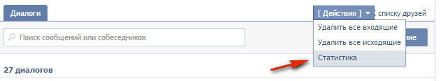 4. По правую сторону от кнопки «Диалоги», в ниспадающем меню [Действия] выбрать «Статистика».