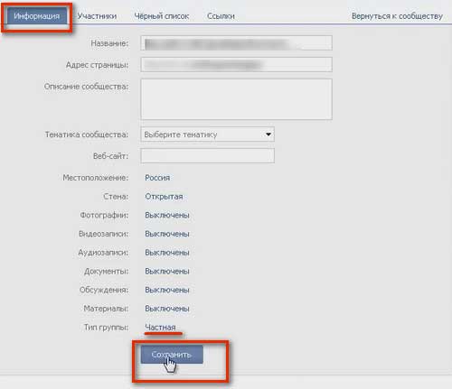 Внимание! Ни в коем случае не удаляйте себя из группы на данном этапе, иначе вы лишитесь прав администратора и, соответственно, не сможете убрать её из соцсети.