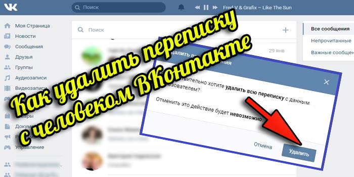 4. В окне «Удалить все сообщения» подтвердите своё намерение очистить историю переписки с выбранным пользователем: нажмите кнопку «Удалить».