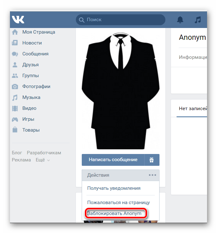 Способ 1. Как добавить пользователя в черный список ВКонтакте