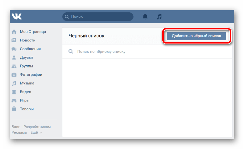 Добавление в ЧС с указанием ссылки на профиль - Вводим полный адрес страницы человека, которого собираемся заблокировать — выглядит он так «http://vk.com/id*********», где место звездочек прописан идентификатор пользователя, добавляемого в ЧС;