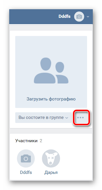 - Нажать на значок в виде «многоточия», расположенный под аватаркой вашей группы;