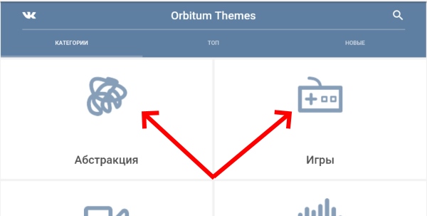 Смена темы ВК в браузере Orbitum - Вам нужно лишь выбрать категорию тем из доступных. Категорий всего 6. При этом в некоторых более 15 разных изображений, которые можно установить в качестве темы ВК на вашем телефоне Андроид.