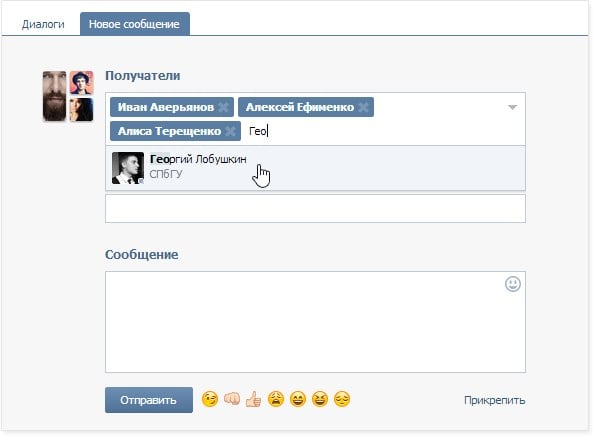 - Если вы пишите сообщение участнику беседы, который не является другом для остальных, вы не сможете добавлять получателей из списка этой беседы.