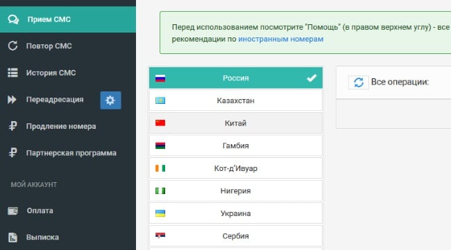 Личный кабинет в сервисе Onlinesim.ru