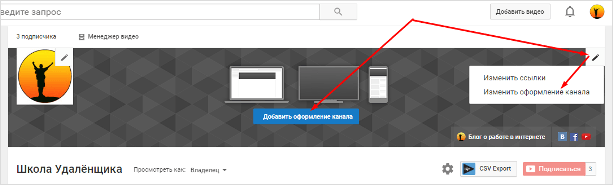 - В настройках канала нажать на кнопку «Изменить оформление»;