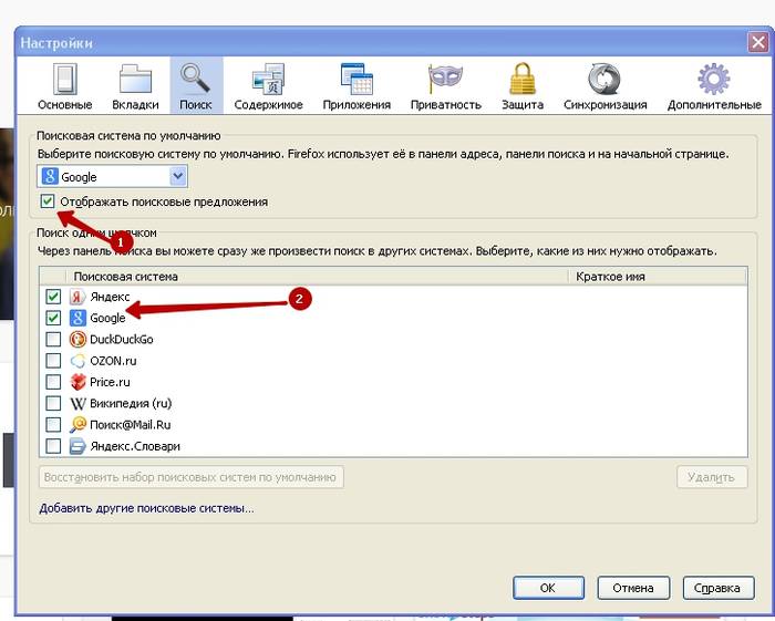 Как правило, Google участвует в этом перечне по умолчанию, и его можно выбрать. Однако сбой или установка дополнений может повлиять на его состав. Для того чтобы вернуть любимый поисковик на место, необходимо в управлении поисковыми плагинами нажать кнопку «Восстановить набор по умолчанию».