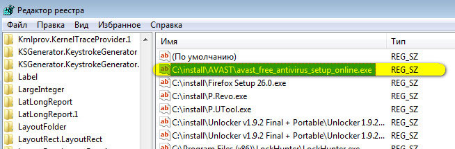 Внимание! Если на винчестере ПК хранится установщик антивирусной программы, он также отобразится и в реестре (будет указана директория, где он находится). Оставьте эту запись в редакторе как есть. А для удаления файла лучше воспользуйтесь стандартной функцией Windows из контекстного меню.