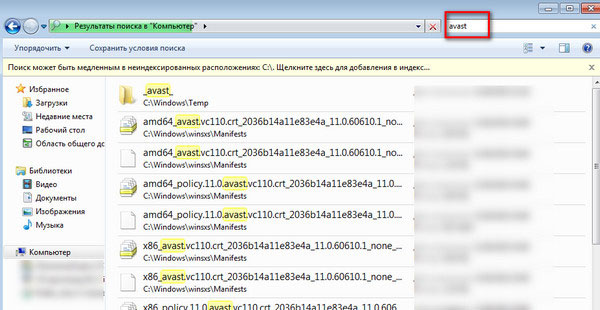 9. Откройте проводник OC, в поисковой строке введите «avast», нажмите клавишу «ENTER».