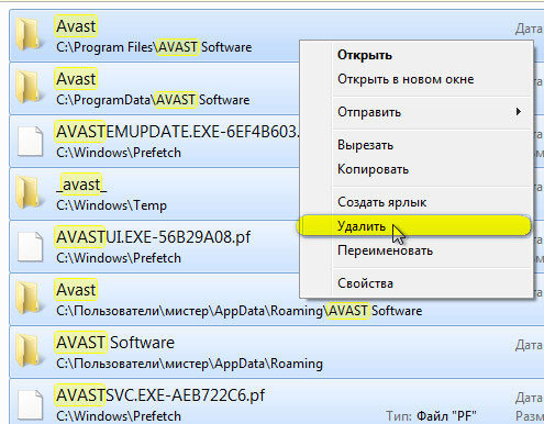 Если все действия были выполнены корректно, то от антивируса Аваст не останется «ни следа ни пятен»!