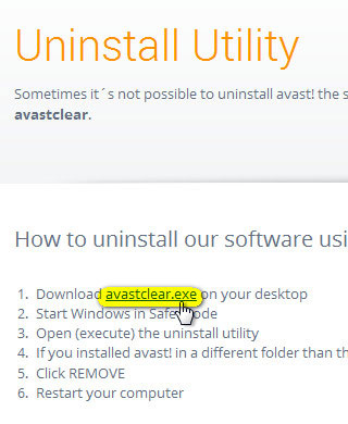 4. Найдите в нижней части инструкцию. Кликните по ссылке «avastclear.exe», находящейся в первом её пункте.