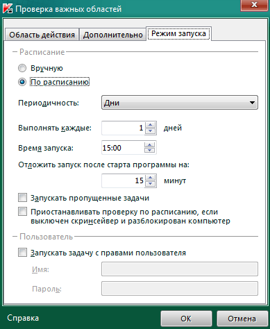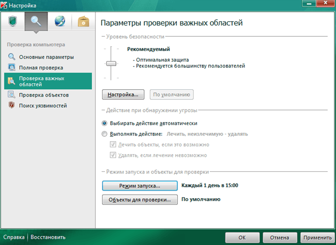 В открывшемся окне можно настроить параметры для автоматического запуска функции «Проверка важных областей». Данная проверка не занимает много времени и системных ресурсов, поэтому лучше выполнять ее ежедневно.