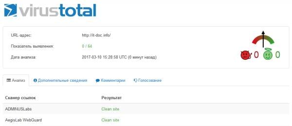 VirusTotal – сервис от Google, умеющий проверять любые файлы на вашем ПК. Также он может сканировать сайты на наличие вредоносных утилит. Пользоваться сервисом очень просто: