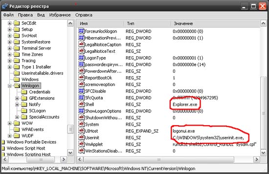 — параметр Shell должен иметь строковое значение Explorer.exe, но для верности лучше прописать полный путь C:\Windows\explorer.exe