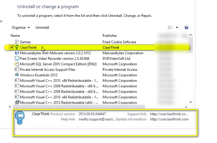 Чтобы удалить Clearthink, выполните нижеописанные действия.