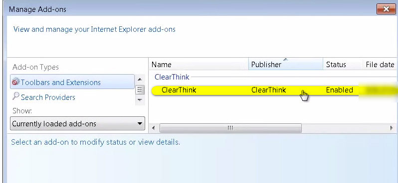 Предупреждение! Ни в коем случае не откладывайте удаление Clearthink! Пока он присутствует в системе, конфиденциальность ваших личных данных находится под угрозой.