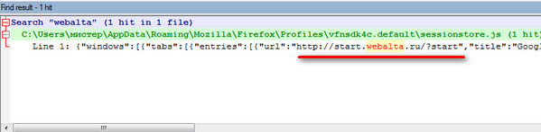 6. Просканируйте программный код отельных файлов интернет-обозревателя на присутствие ссылок вебальта (для каждого браузера используются различные способы очистки).