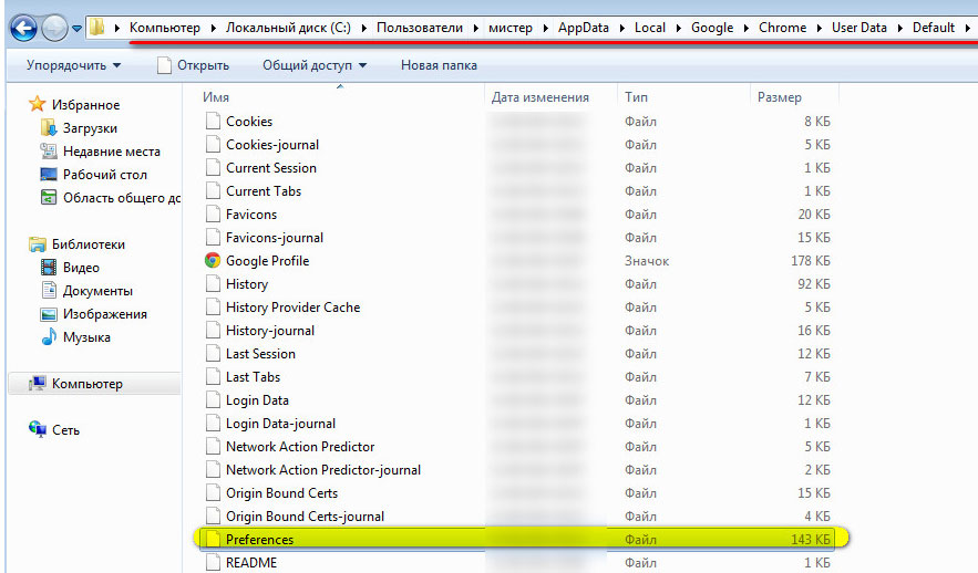 - следуйте в директорию браузера по пути AppData >> Local >> Google >> Chrome >> User Data >> Default;