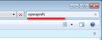 - в открывшемся окне в поиске (опция вверху справа) введите operaprefs;
