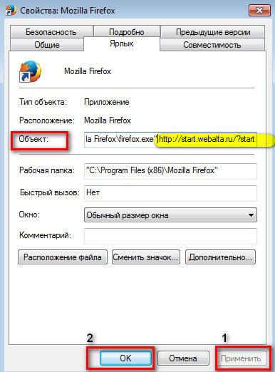4. Проанализируйте свойства ярлыков всех браузеров, которые только есть в системе, на предмет сторонних записей в поле «Объект».