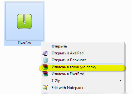 - кликните правой кнопкой по файлу FixerBro.zip;