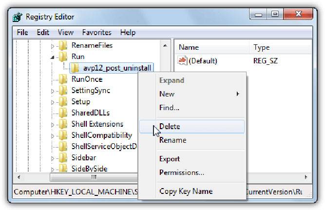 - в безопасном режиме запускаем специальную утилиту regedit (через пункт «Выполнить»), находим все связанные с антивирусом ключи и удаляем их.