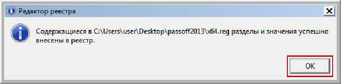 - после выполнения предыдущего пункта откроется окно оповещения, в нем будет сообщено об успешном внесении изменений в реестр.