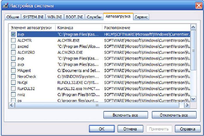 - далее утилитой для редактирования автозагрузки msconfig отключаем автозагрузку (убираем галочку);