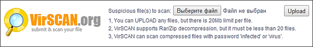 Перейти на сайт http://virusscan.jotti.org/ru.