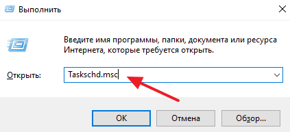 Также вы можете нажать комбинацию клавиш Windows-R и в открывшемся окне ввести команду «Taskschd.msc».