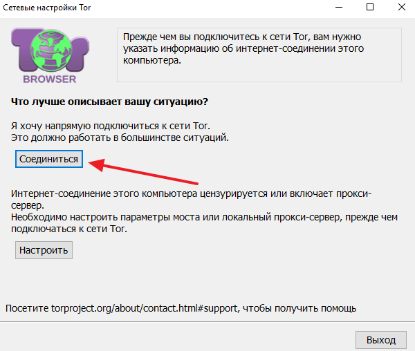 Здесь доступны две кнопки: Соединиться и Настроить. Если нажать на кнопку «Соединиться», то ТОР браузер начнет работу с стандартными настройками. Данный вариант подходит для большинства случаев.