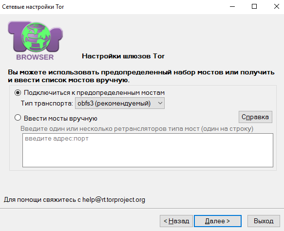 Если же выбрать «Да», то ТОР браузер предложит настроить мосты. Мост — это точка в сети TOR, адрес которой не публикуется в документации TOR. Скачать список мостов вы можете на сайте bridges.torproject.org.