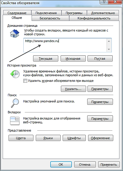 Как сделать Яндекс стартовой страницей в веб-браузере Internet Explorer