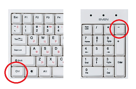 CTRL и клавиша «-» – использовав комбинацию клавиш CTRL и «-» вы уменьшите шрифт в браузере. Пользователь может использовать клавишу «-» как на основной, так и на дополнительной клавиатуре.