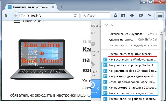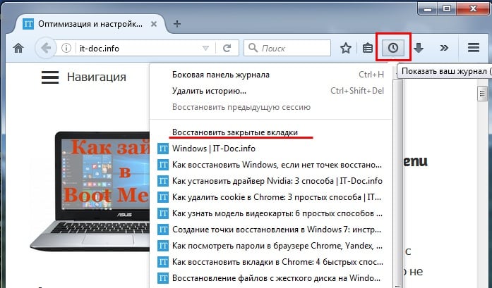 Кстати, таким же методом можно открыть закрытую вкладку в Хроме, а также в Opera и Internet Explorer. Разработчики браузеров делают некоторые кнопки универсальными, и это очень хорошо. Если вдруг поменяете Chrome или Opera на Mozilla Firefox (или наоборот) – не придется привыкать к новой программе.