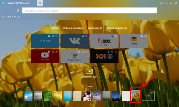 Вот так просто поставить свою тему на Яндекс. Новая картинка добавится в список, и при необходимости вы можете переключаться между нею и остальными фонами.