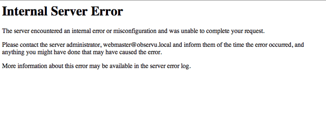 Internal Server Error — The server encountered an internal error or misconfiguration and was unable to complete your request