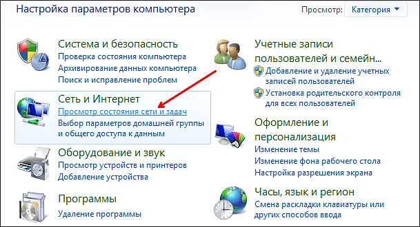 Также вы можете открыть «Центр управления сетями и общим доступом» и через Панель управления, для этого нужно кликнуть по ссылке «Просмотр состояния сети и задач».
