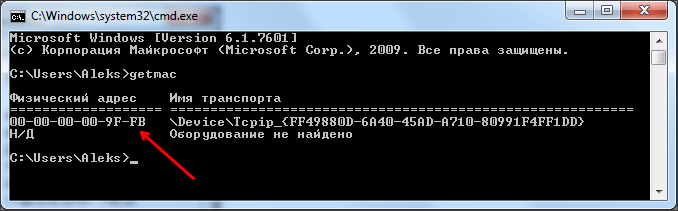 Если указанный выше способ кажется вам слишком сложным то, вы можете воспользоваться командной строкой. Откройте командную строку и введите команду GETMAC. После этого система отобразит список сетевых карт с их MAC адресами.
