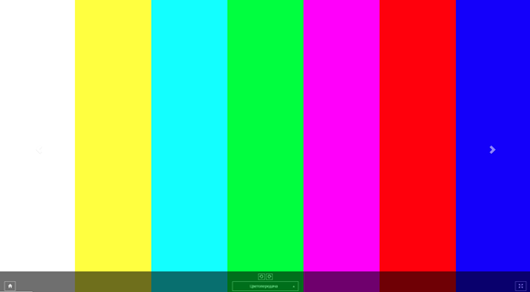 После этого на экран поочередно будут выводиться изображения разных цветов, и вы сможете проверить монитор на битые пиксели. Для того чтобы черная полоска внизу экрана и стрелки исчезли просто не двигайте мышкой. Для перехода к следующему изображению используйте левый клик мышкой или стрелку «Влево». Когда проверочные изображения закончатся вы сможете выйти с помощью кнопки ESC на клавиатуре.