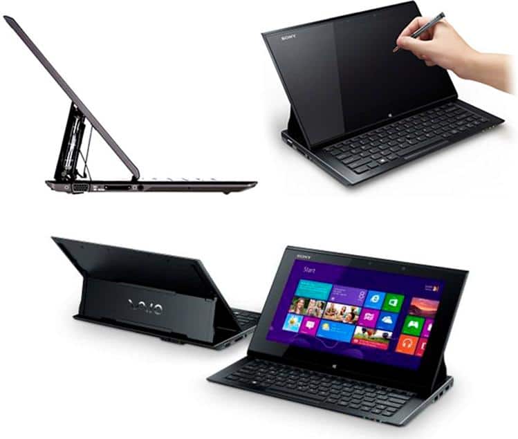 Sony Vaio Duo 11 – последнее устройство, которое мы рассмотрим. Данный гаджет нельзя назвать полноценным ноутбуком, однако он может заинтересовать многих пользователей. Sony Vaio Duo 11 это скорее планшет, который может трансформироваться в ноутбук, чем наоборот. В Sony Vaio Duo 11 используется способ трансформации, который известен как слайдер. Для того чтобы открыть клавиатуру пользователю необходимо сдвинуть экран.