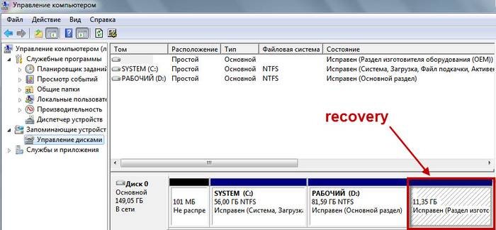 Там можно посмотреть и размер, который занимает Recovery на HDD. Обычно это 20-25 Гб системной информации и установочных файлов.