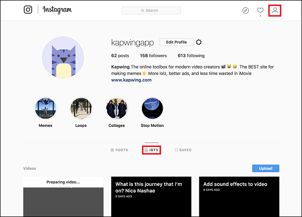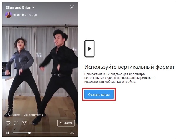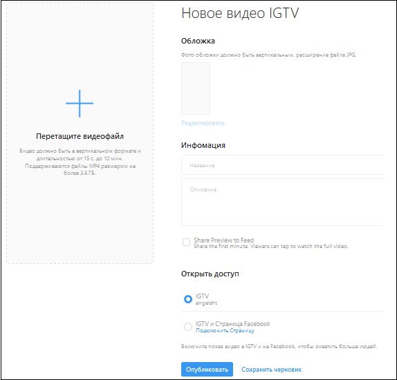 Выложить IGTV-видео на сайте Instagram можно схожим образом.
