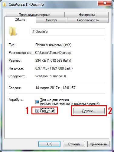 Вот таким образом можно скрыть папку на компе. Если все сделали правильно, она тут же исчезнет. Если папка стала прозрачной, но по-прежнему видна, это значит, что на ПК включено отображение скрытых документов. Исправить это очень легко: