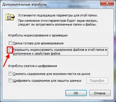 - Уберите птичку в строке «Разрешить индексировать» (чтобы ее не нашли через «Поиск») и сохраните изменения.