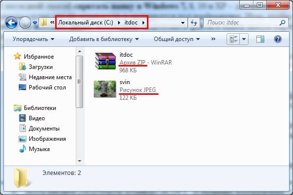 - Создайте папку на локальном диске C и скопируйте туда этот архив и приготовленную ранее картинку. У меня она расположена по пути C:itdoc (потом ее можно переместить на рабочий стол, флешку или в любое другое место).