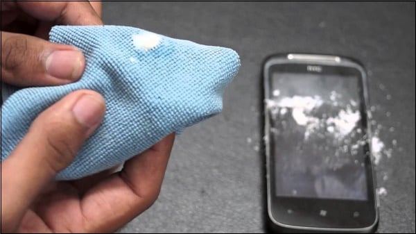 - Нанесите полученную пасту на чистую мягкую ткань, и с помощью круговых движений протрите царапины экрана.