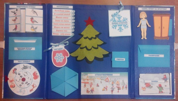 Лэпбуки часто называют «интерактивными папками». Они создаются руками ребёнка, несут определённую информацию (рисунки, пазлы, карточки и др.), с которой ребёнок активно взаимодействует. Темой книжки может быть всё, что угодно – явления, предметы, существа, процессы и так далее. Например, это может быть «Зимующие птицы», «Дикие животные Африки», «Дни недели», «Машины» и другие. При выборе лэпбука необходимо учитывать возраст ребёнка, и его способность погружаться в выбранную тему. Для дошкольников стоит выбирать темы попроще.